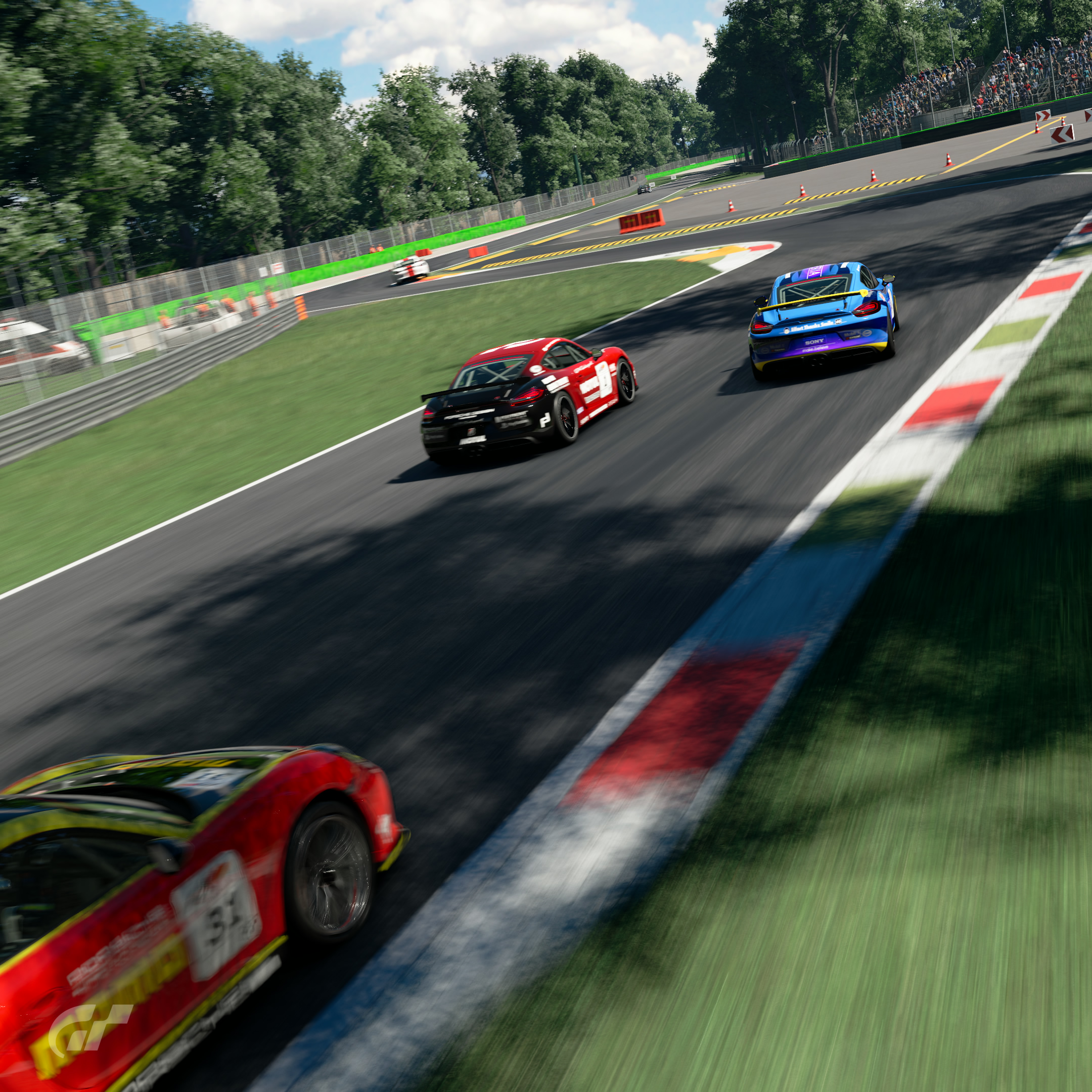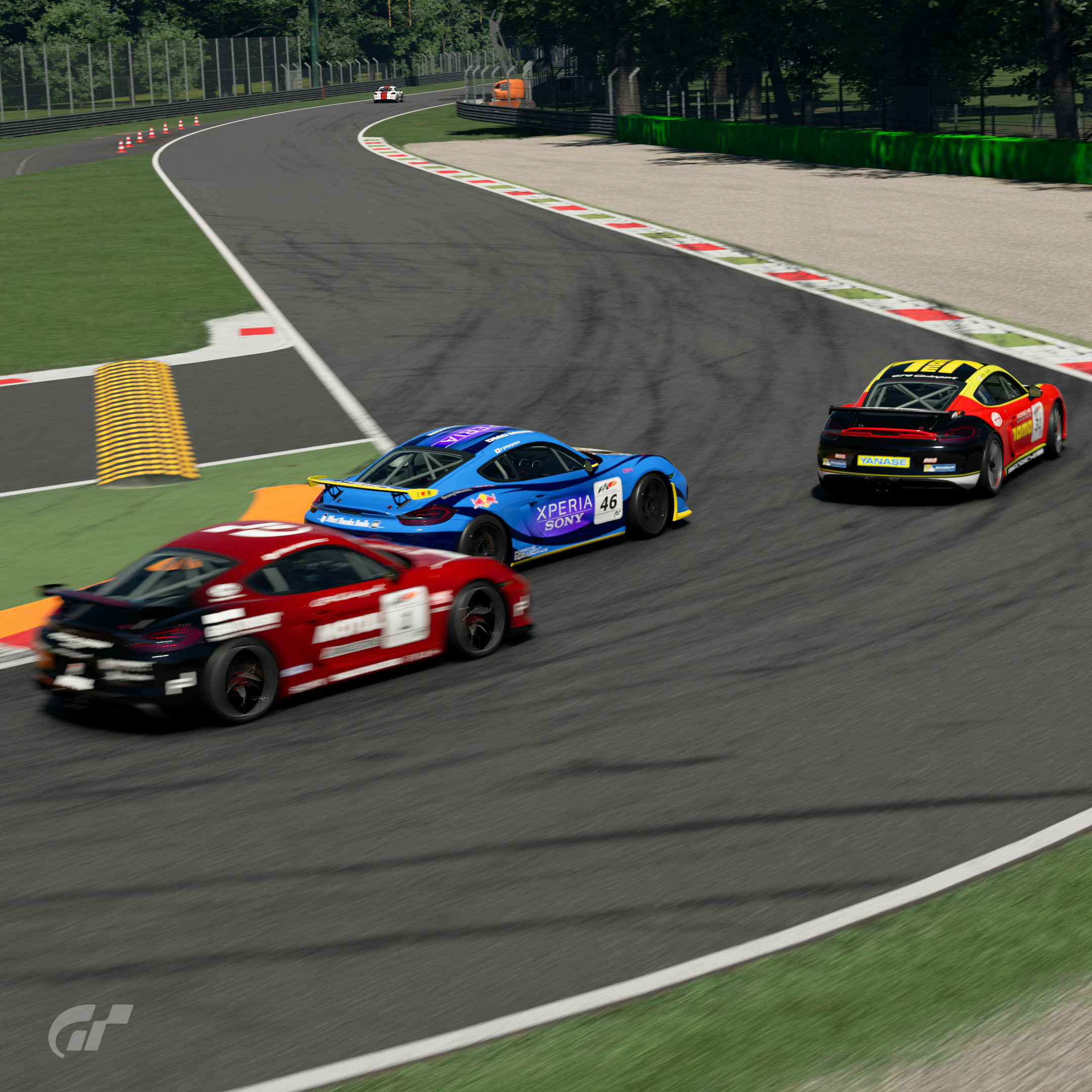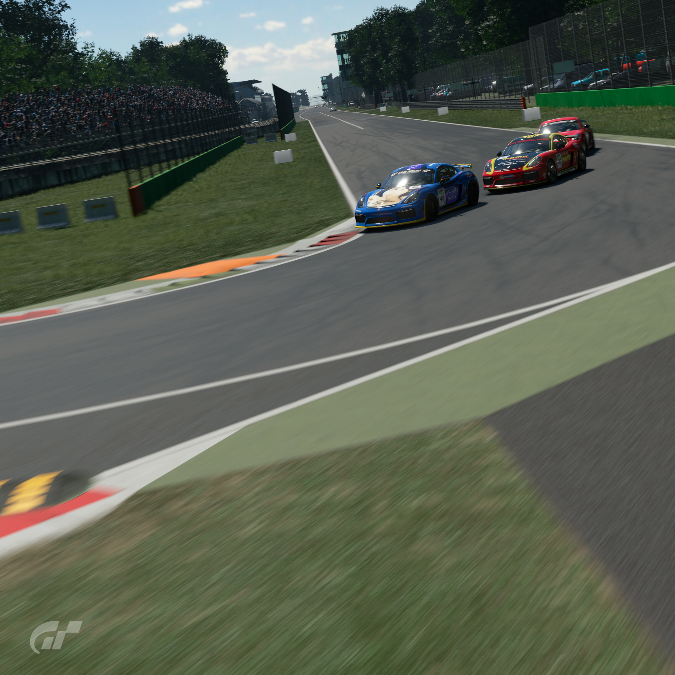 とか言ってたら7周目の第2シケインでペンギン選手がミス。